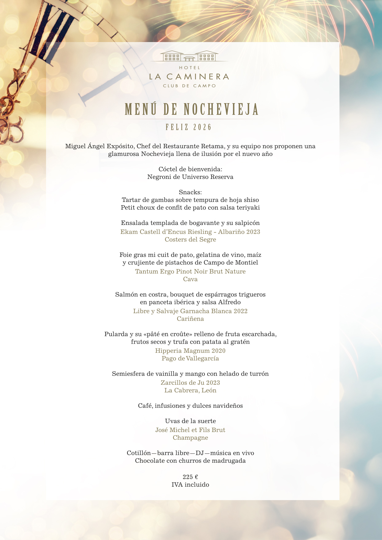 Imagina terminar el año rodeado de un paisaje manchego único, donde todo está pensado para que vivas una Nochevieja mágica y llena de emociones. En La Caminera Club de Campo queremos que digas adiós al 2025 y recibas al 2026 con alegría , con sabor y con momentos que se quedarán para siempre en tu memoria.